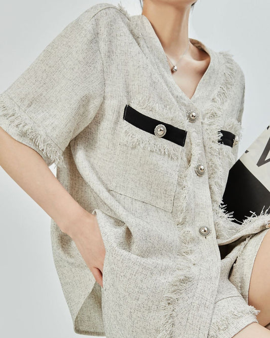 Loose T-shirt & Shorts & Border Shawl Set TP073