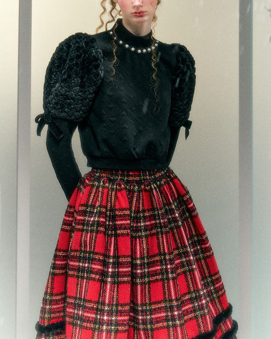 Fur Sleeves Bow Pearl Decoration Knit TP009