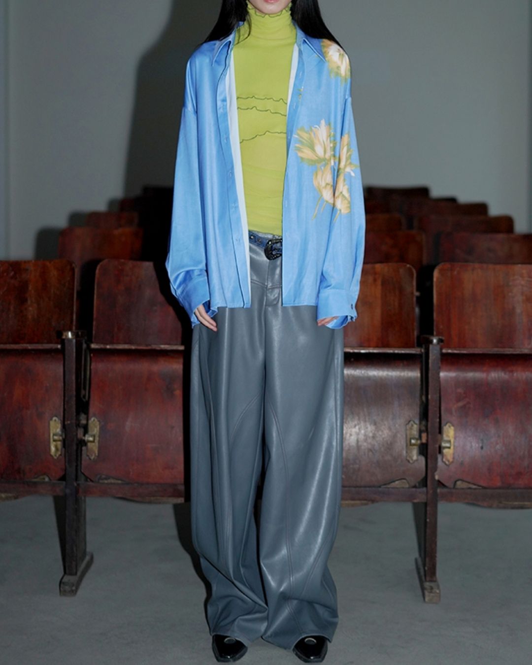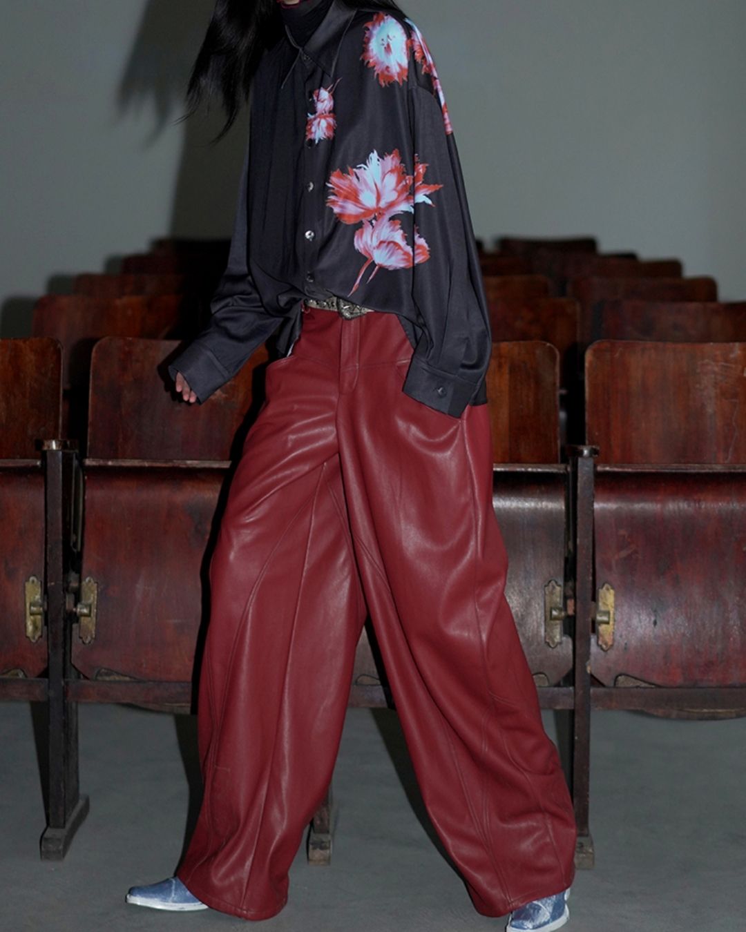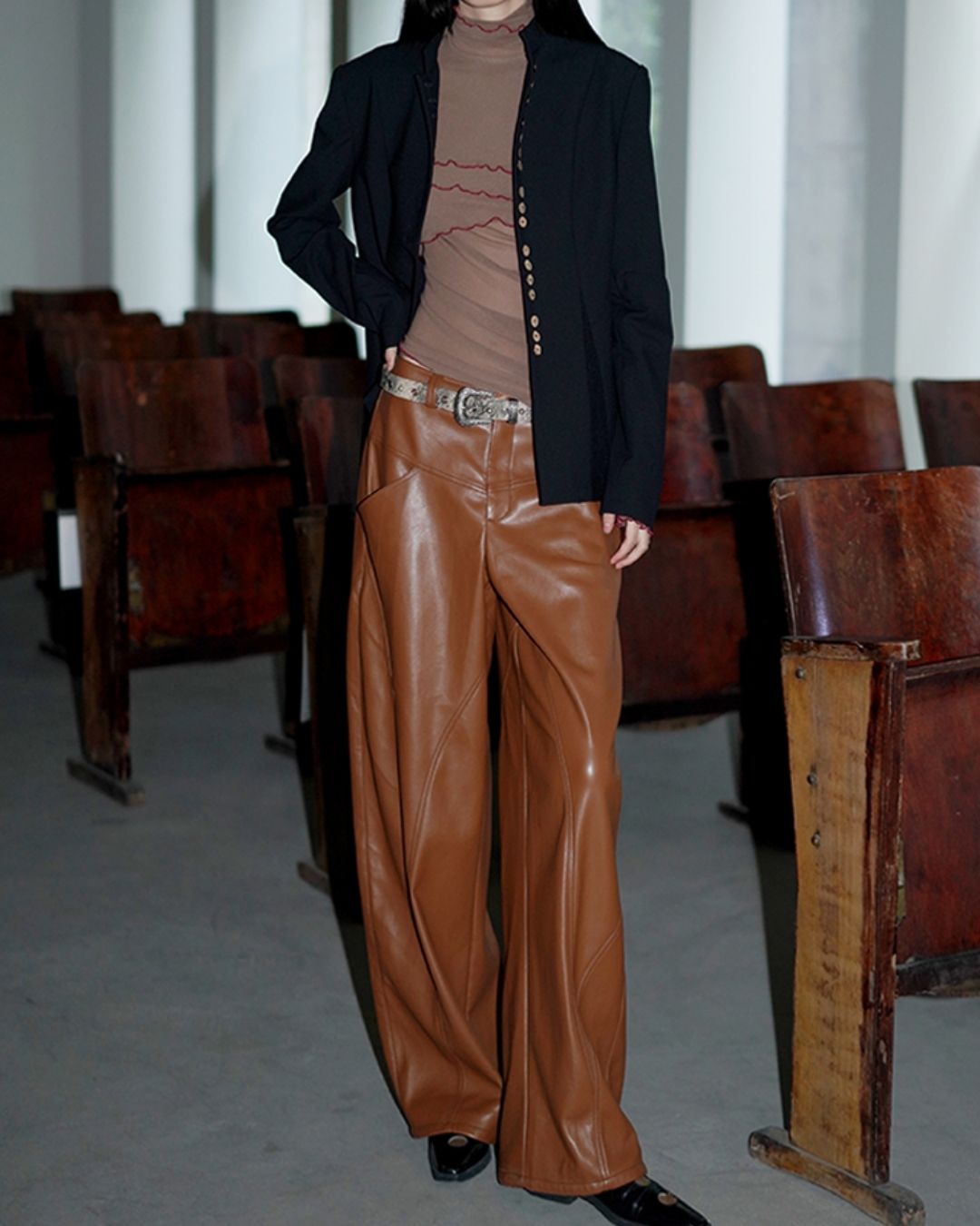 Wide Straight Leather Pants BT020
