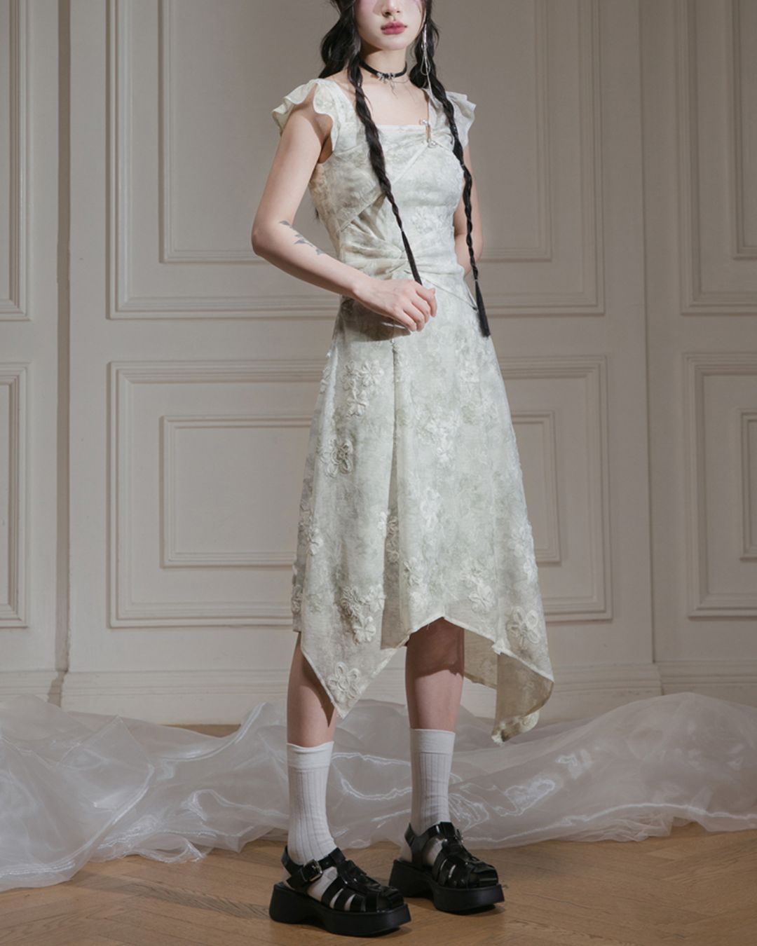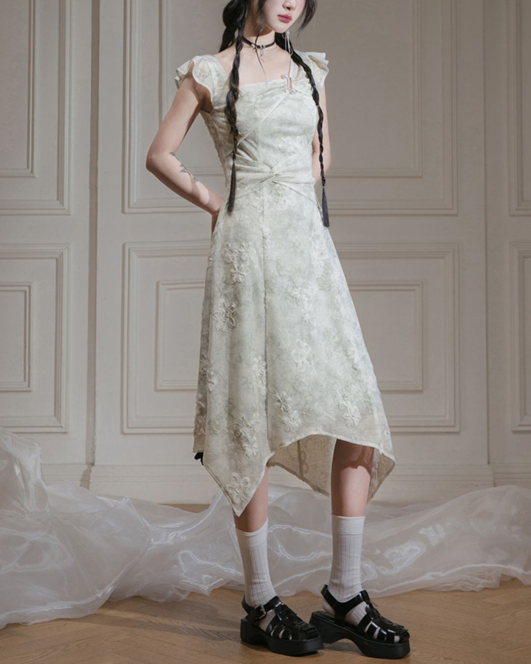 French Sleeve Asymmetrical Dress DR041