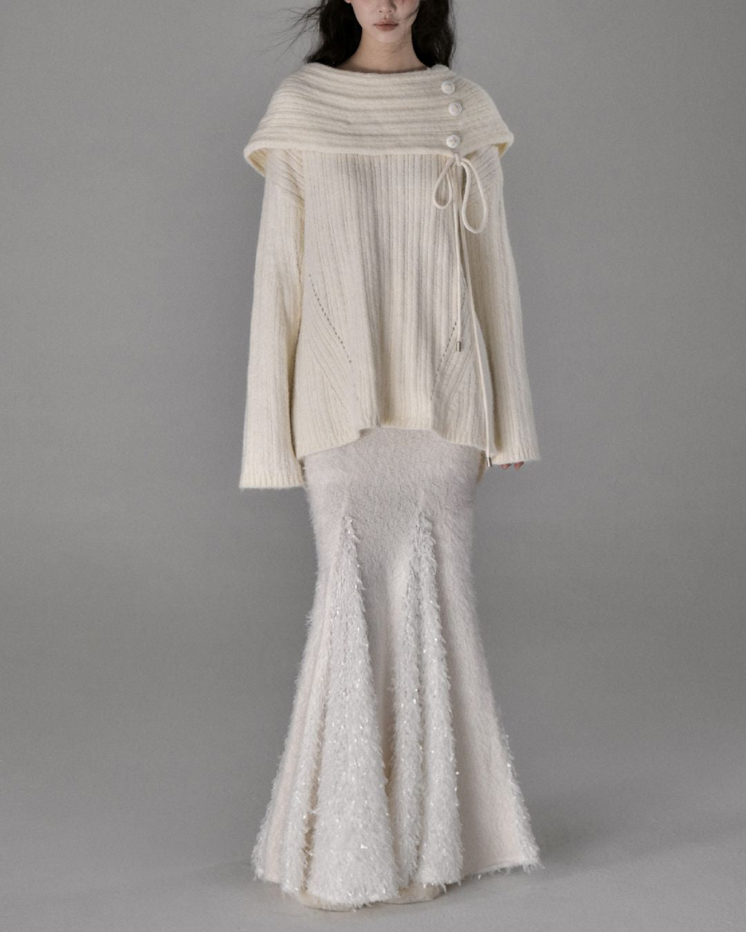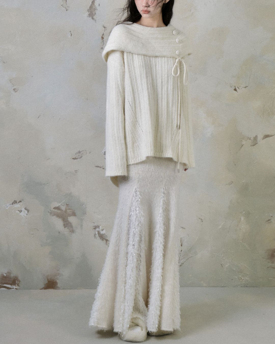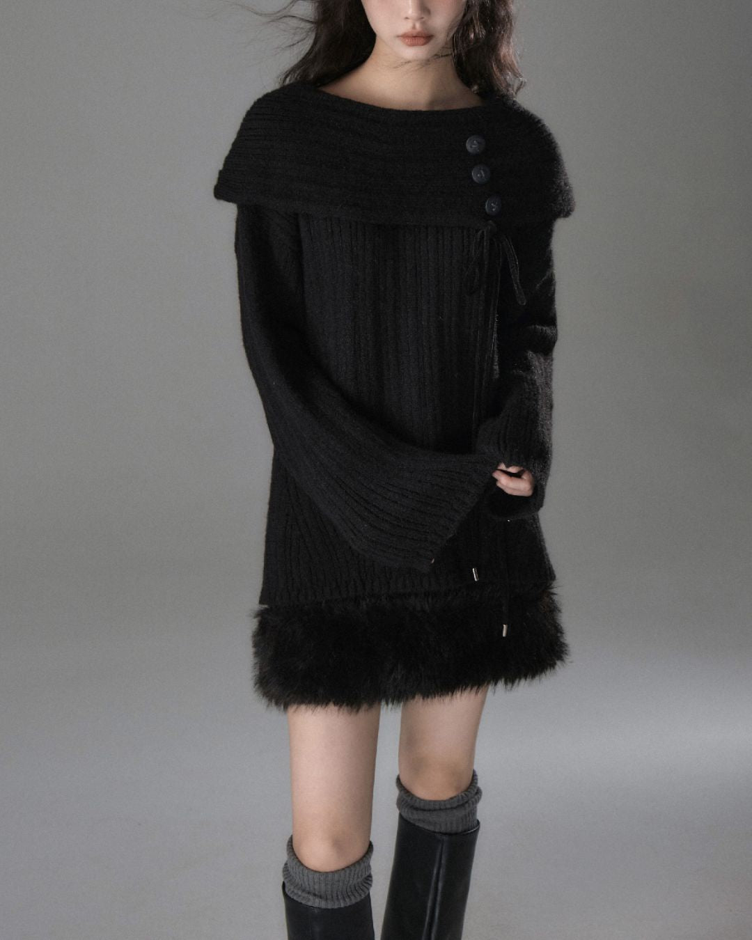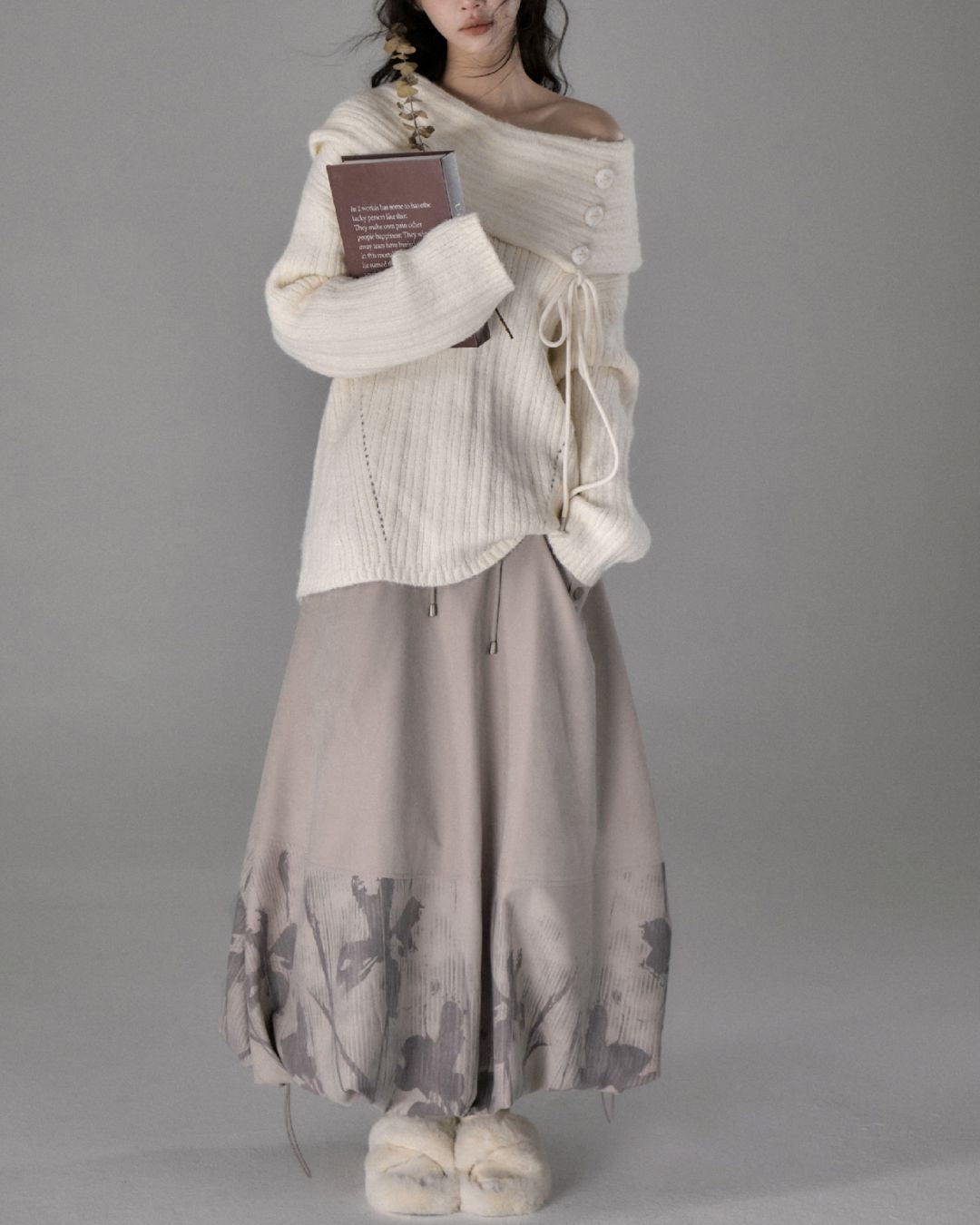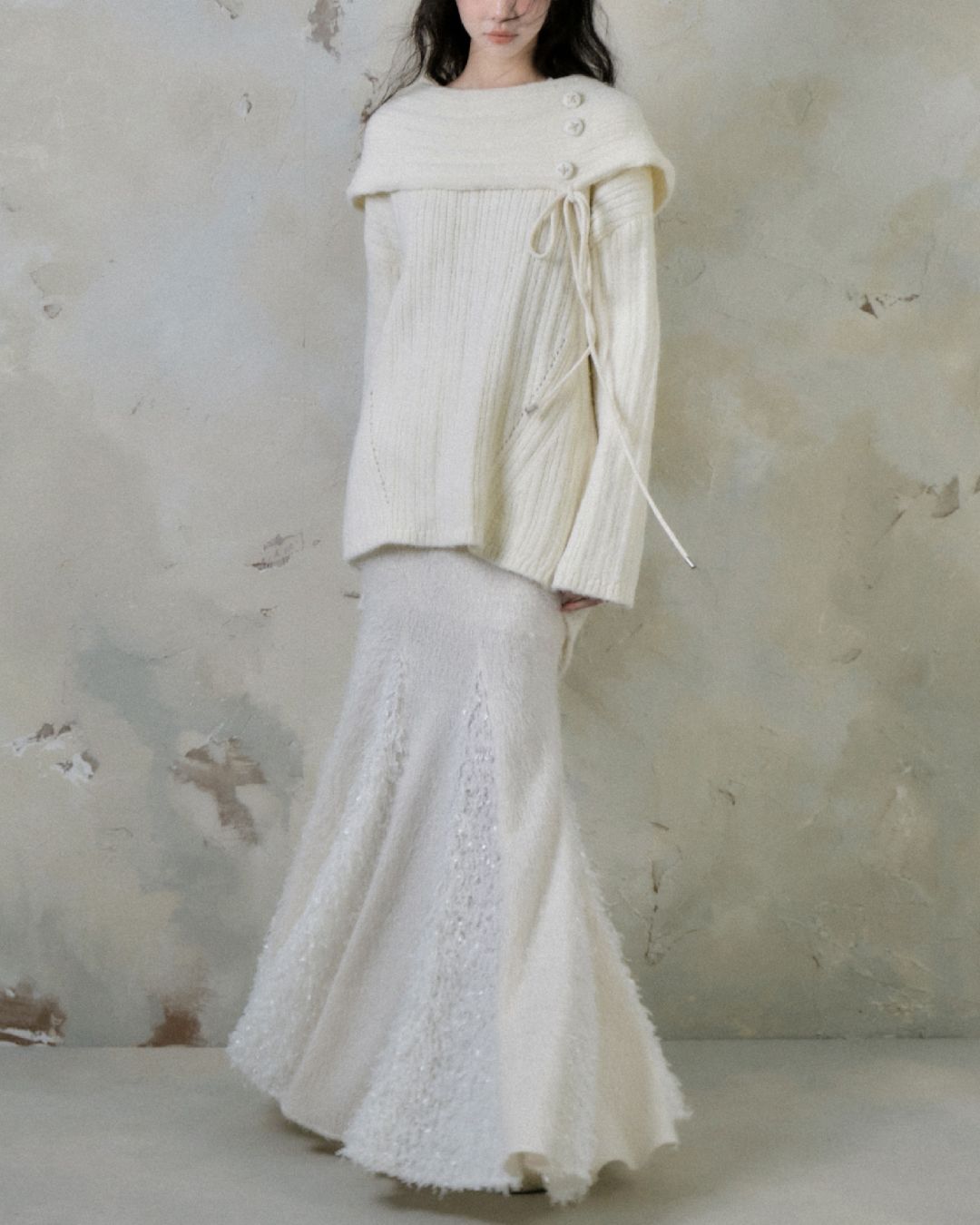 Button Ribbon Off Shoulder Knit TP022