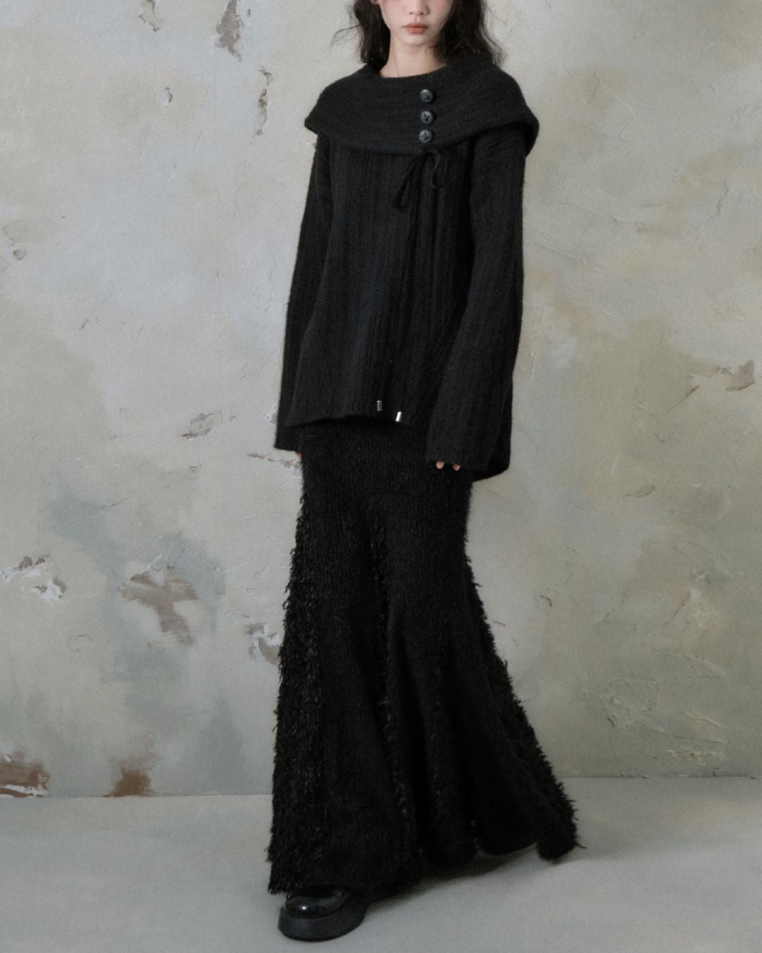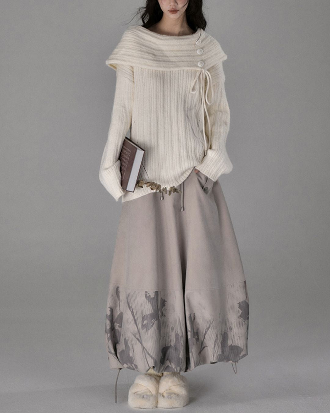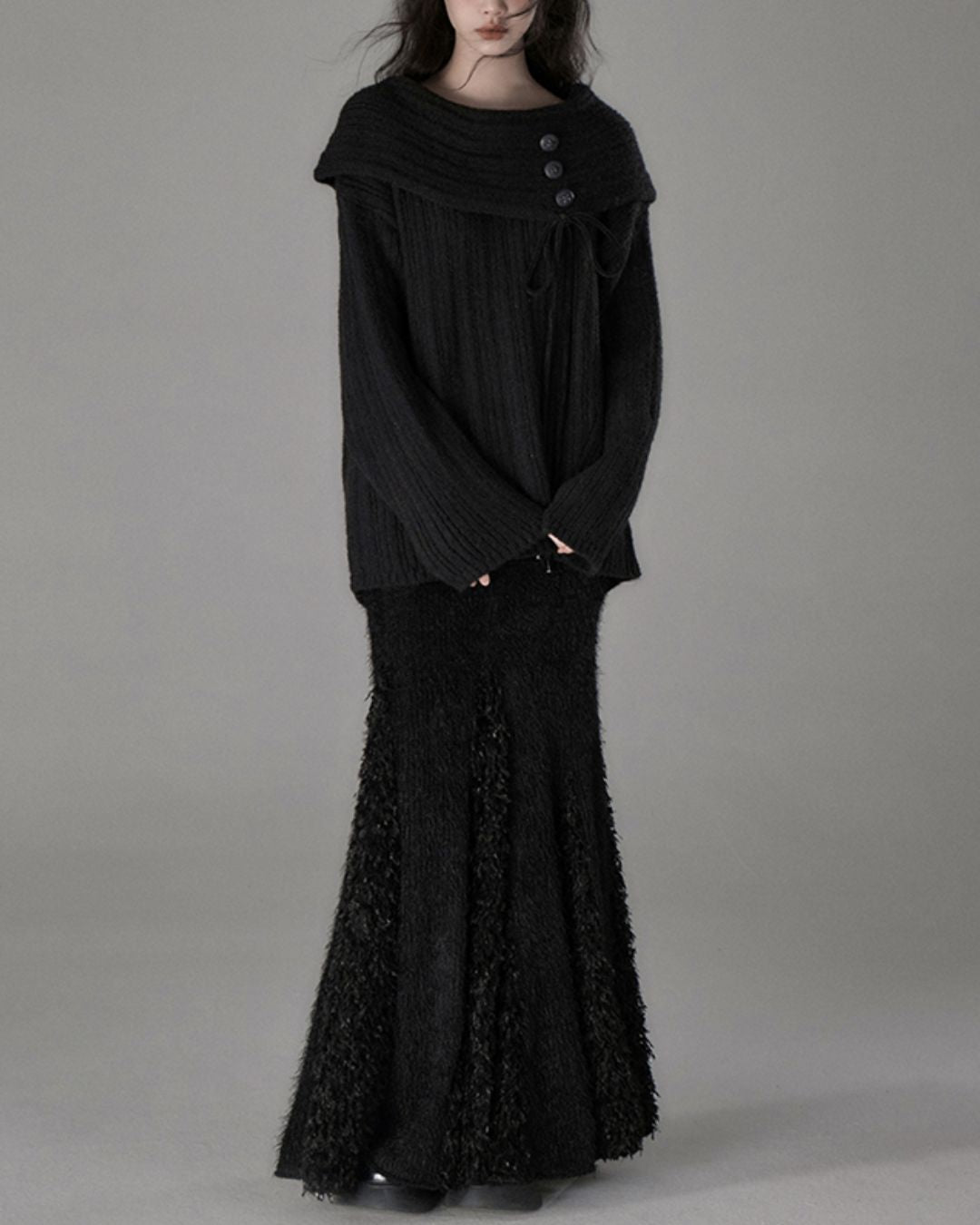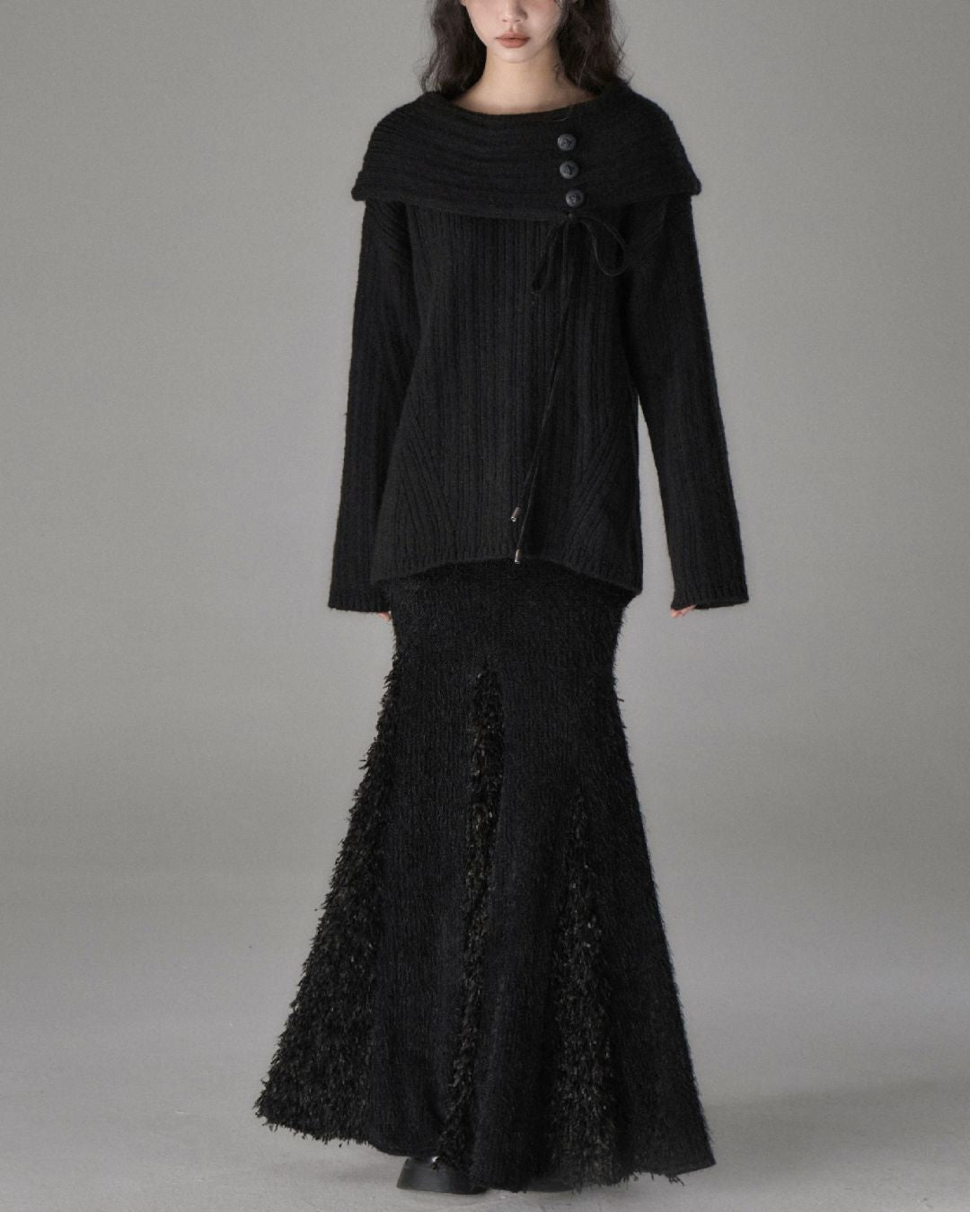 Button Ribbon Off Shoulder Knit TP022