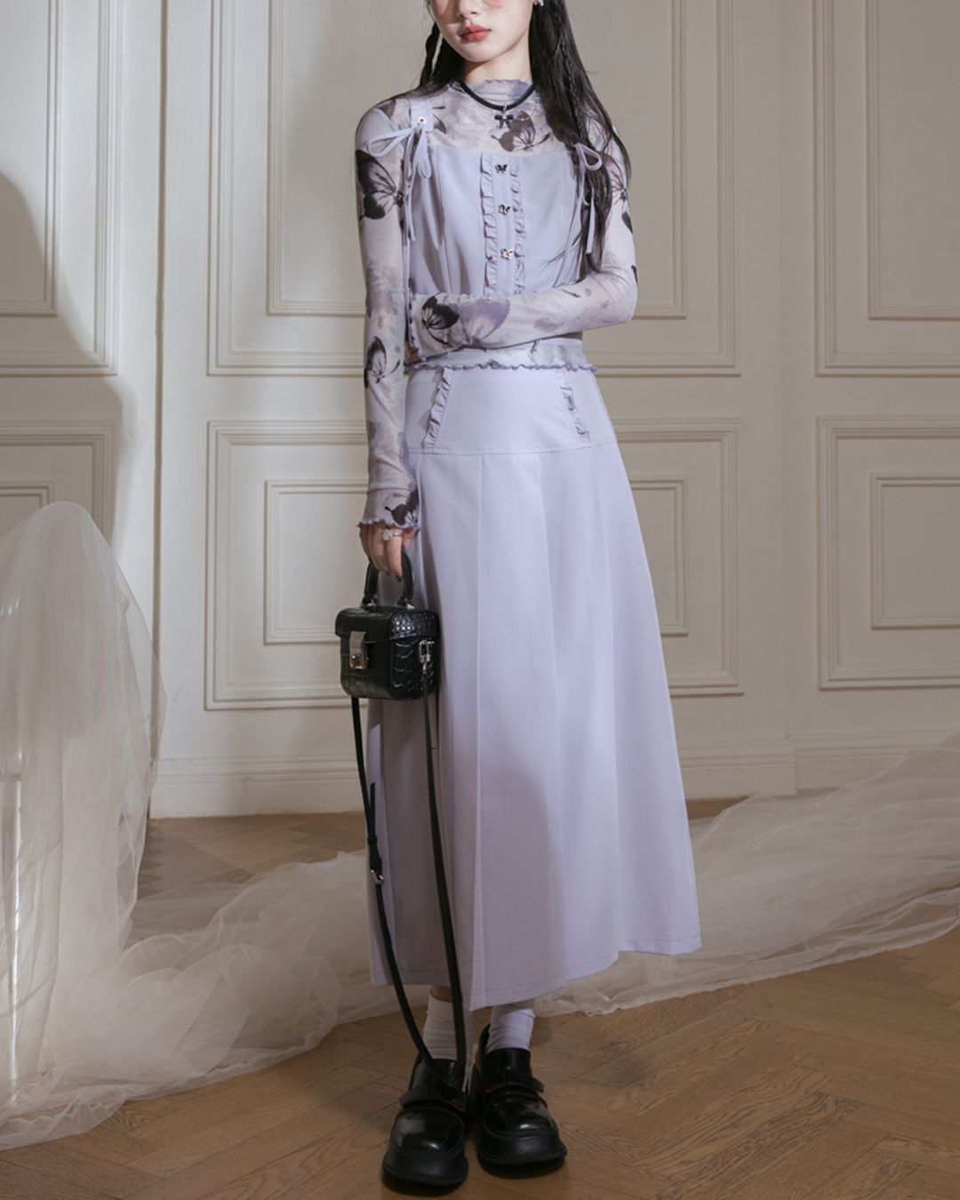 Butterfly Sheer Top & Vest & Pleated Skirt TP024