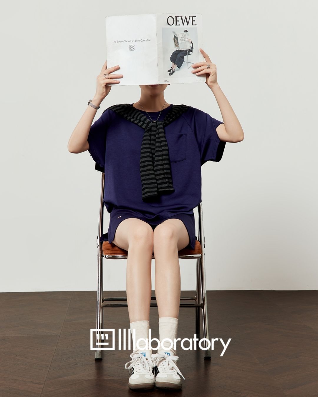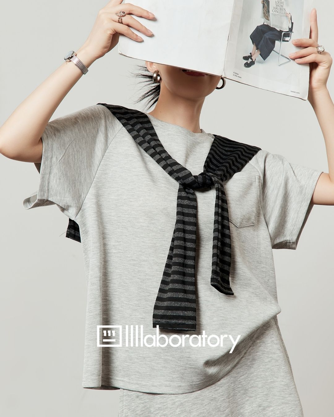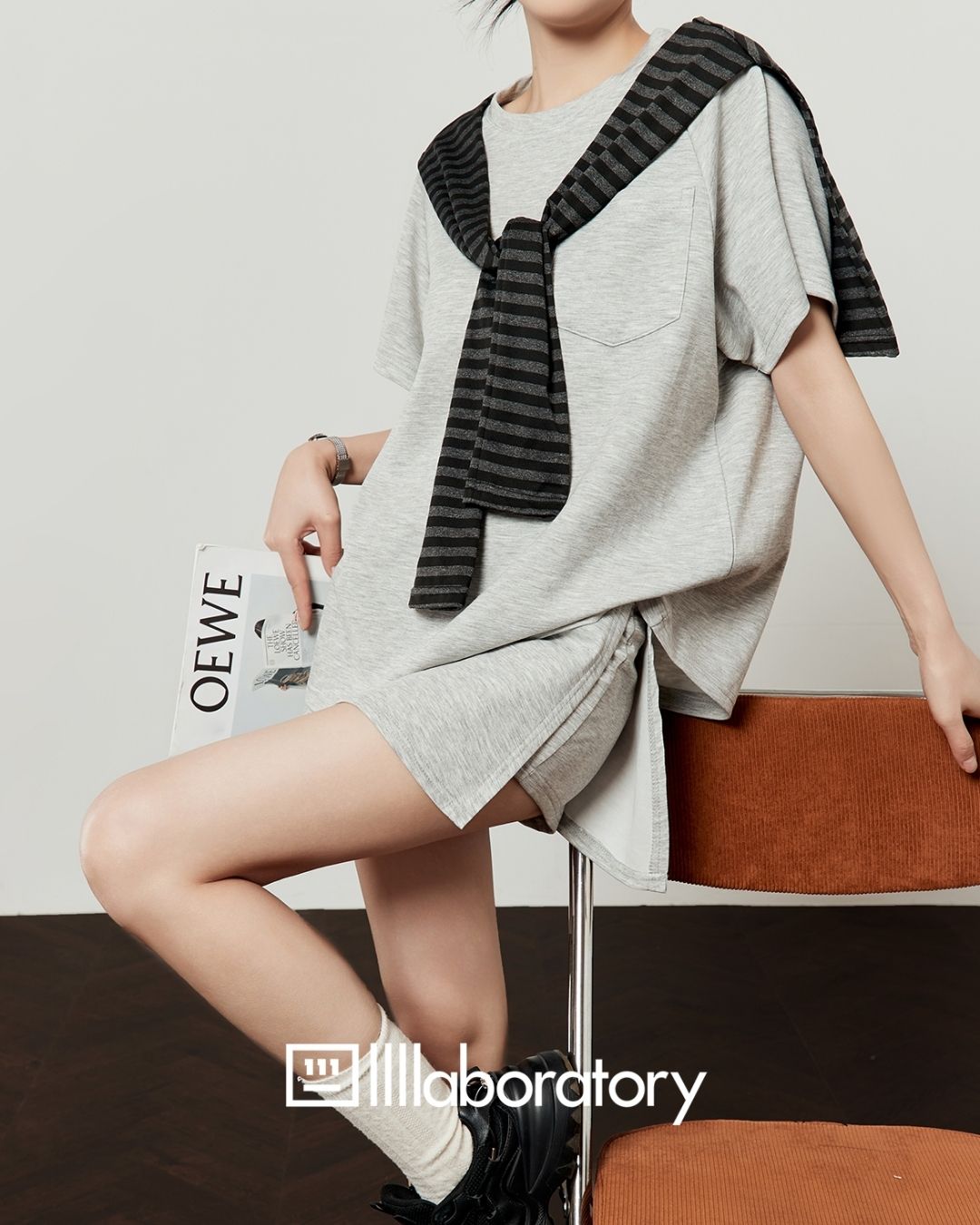 Loose T-shirt & Shorts & Border Shawl Set TP073